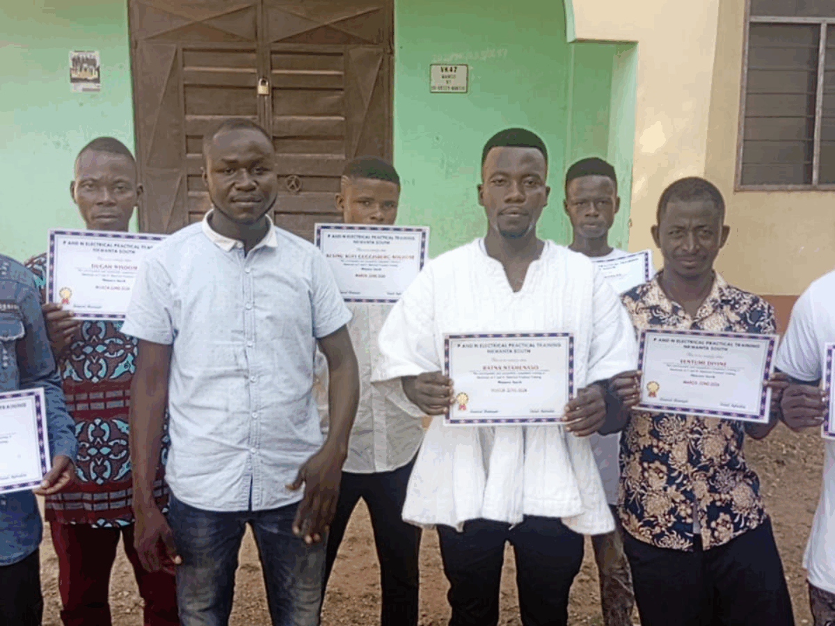 Hon. Frank Yeboah Amankora, Assembly member for Bontibor/Salifukrom electoral area, was overwhelmed with joy as he presented handed certificates to bright, ambitious youths after completing and electronics skills-training program.