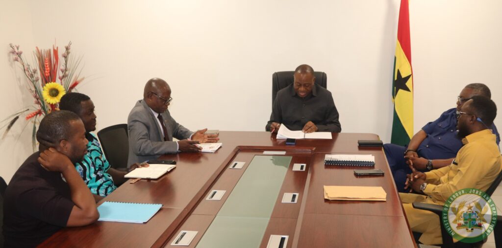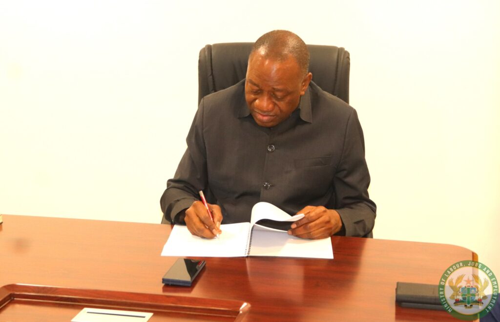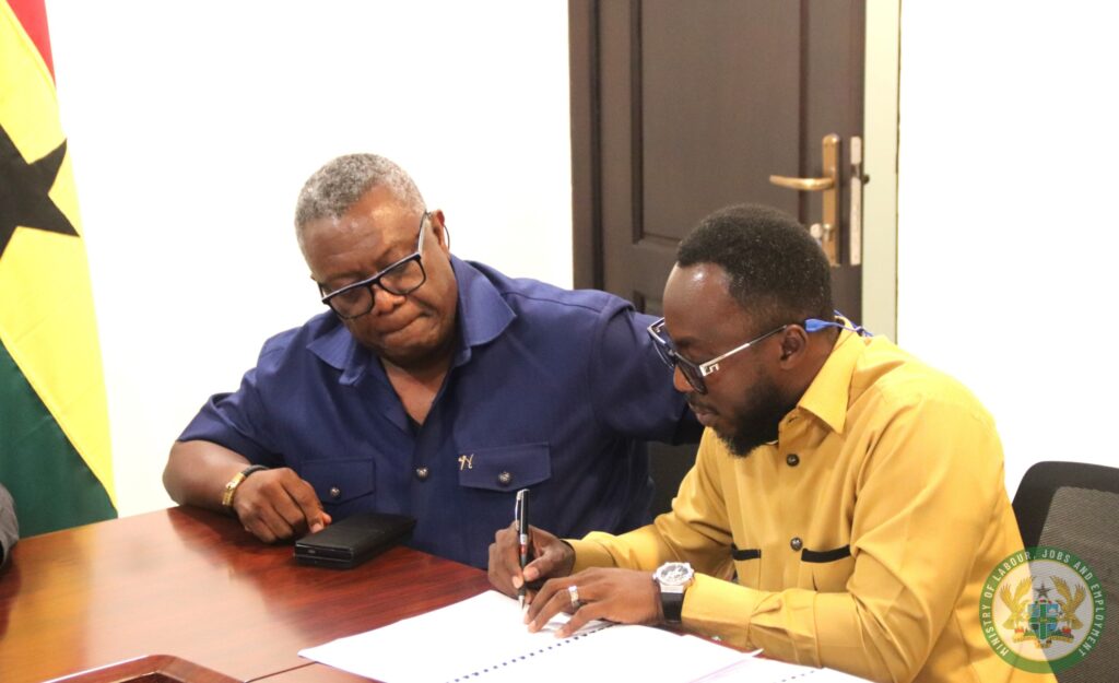 The Memorandum of Understanding (MoU) was signed by Dr. Abdul-Rashid Hassan Pelpuo, Minister for Labour, Jobs and Employment, and Solomon Daniel Amarh Laryea, who represented CG Technical Services CEO Charles Reynolds.